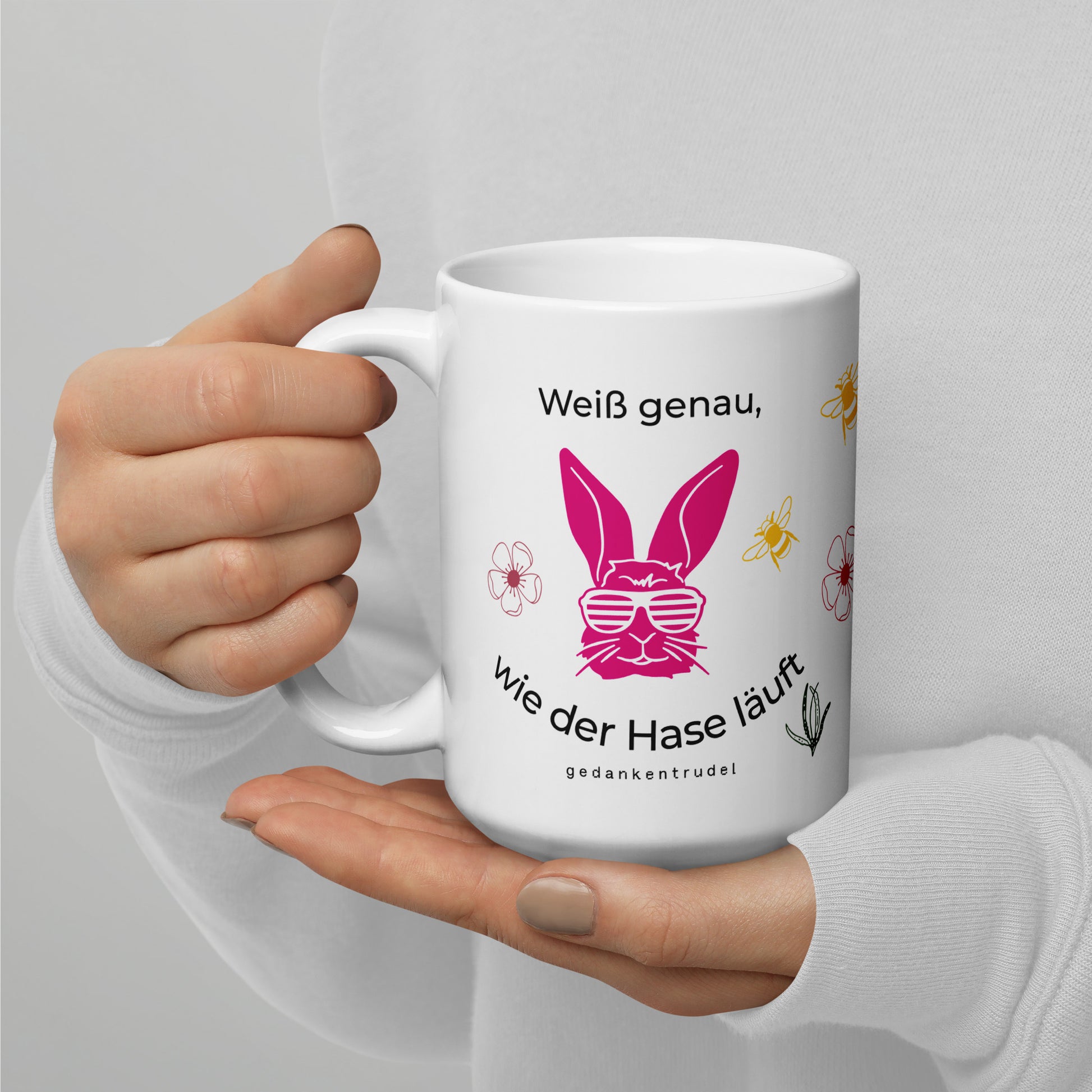 Diese besondere Tasse von gedankentrudel verbindet Humor mit stilvollem Design – perfekt für die Osterzeit oder als liebevolles Geschenk für Lieblingsmenschen.